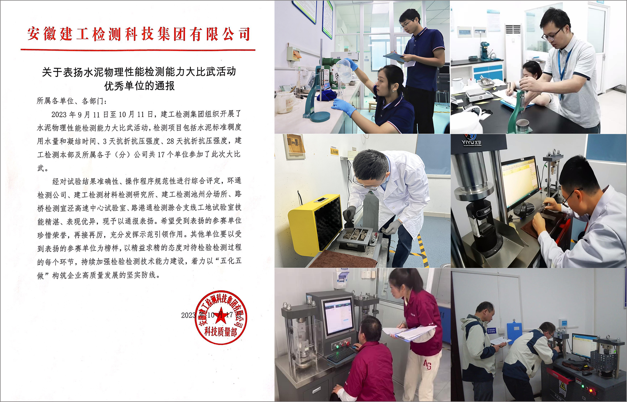 增強質(zhì)量意識 推進高質(zhì)量發(fā)展丨建工檢測水泥物理性能檢測能力大比武活動完美收官