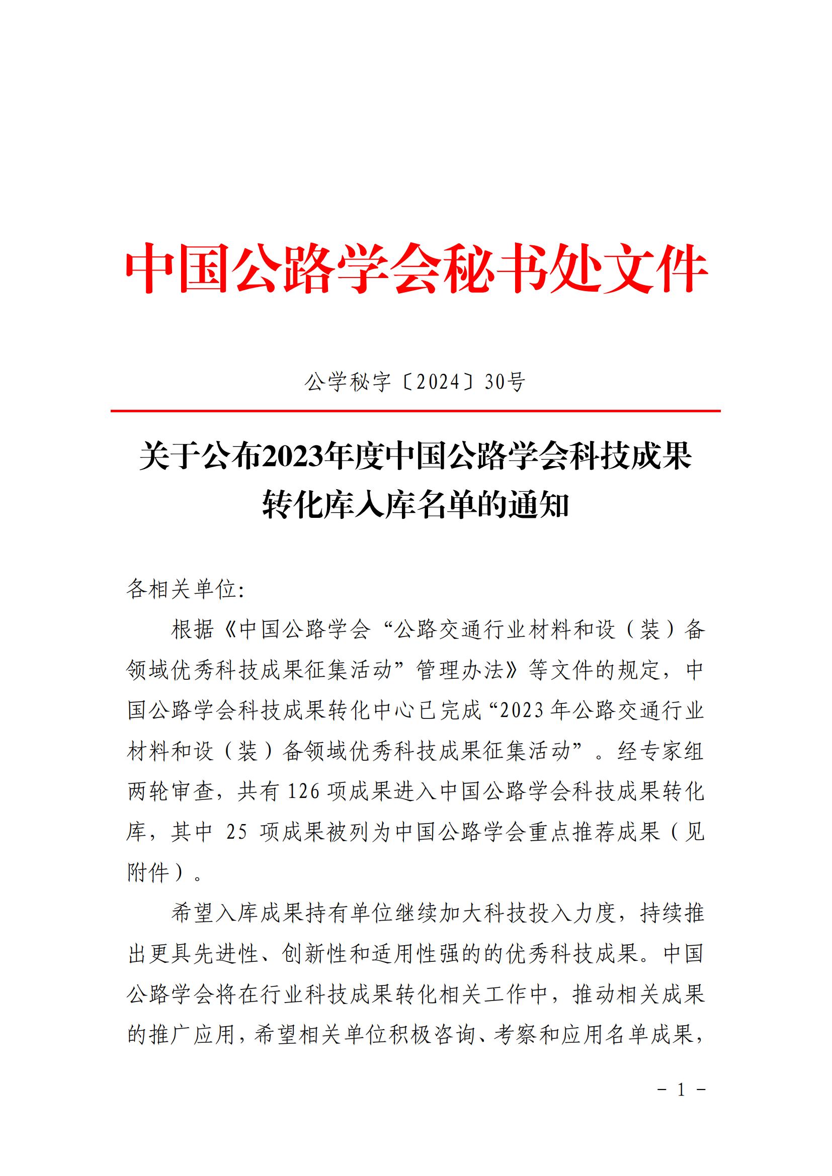 喜報!環(huán)通公司一項創(chuàng)新成果成功進入中國公路學會科技成果轉(zhuǎn)化庫