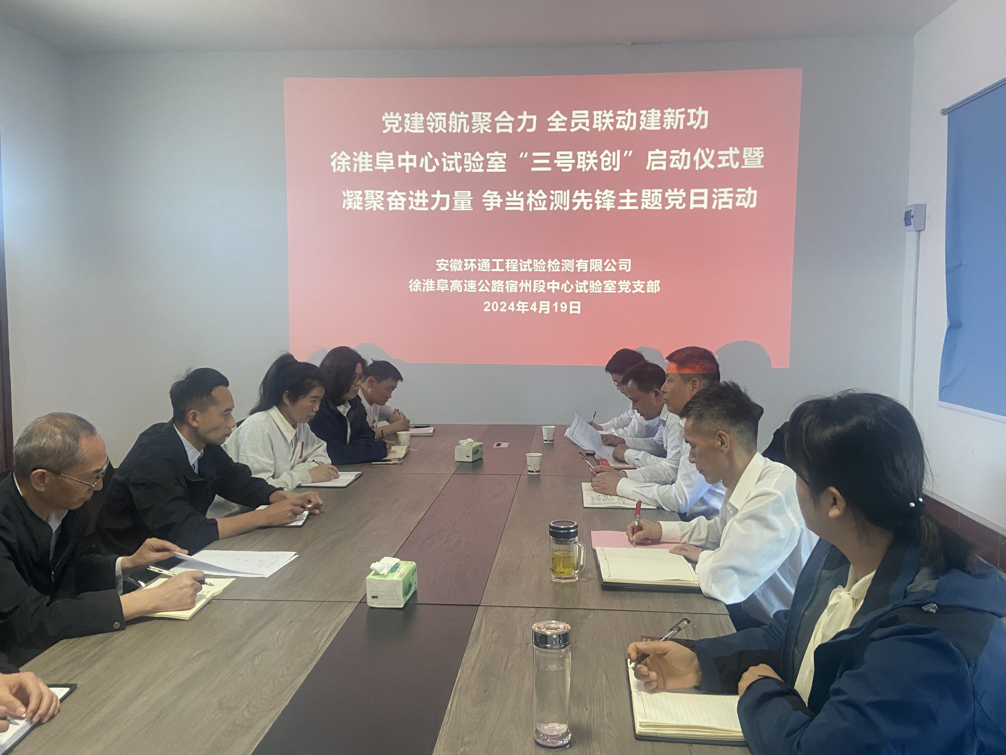為深入貫徹落實黨的二十大精神,加強試驗室生產(chǎn)與黨建工作有機結合。4月19日,環(huán)通公司徐淮阜中心試驗室舉行“三號聯(lián)創(chuàng)”啟動儀式暨“凝聚奮進力量 爭當檢測先鋒”主題黨日活動,環(huán)通公司黨總支副書記、副總經(jīng)理、工會主席夏輝倉出席活動并講話。