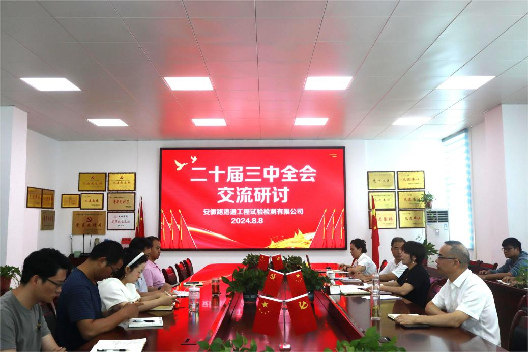 近日,路橋檢測黨總支組織召開黨的二十屆三中全會專題學習研討會議,黨總支委員、領(lǐng)導班子成員、中層正副職及部分黨員參與學習研討。會議要求,與會人員要學習好、宣傳好、貫徹好黨的二十屆三中全會精神,始終保持“闖”的精神、“創(chuàng)”的勁頭、“干”的作風,帶好頭、作表率,扎實推動路橋檢測公司的高質(zhì)量發(fā)展。