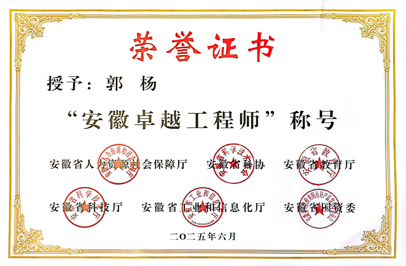 近日,從安徽省住房和城鄉(xiāng)建設廳傳來喜訊,公司黨委委員、副總經(jīng)理、工會主席郭楊憑借在工程領域的突出貢獻,榮獲首屆“安徽工程師獎”,被授予“安徽卓越工程師”稱號。此次評選由省人力資源社會保障廳、省科協(xié)、省教育廳、省科技廳、省工業(yè)和信息化廳、省國資委等六部門聯(lián)合開展,旨在表彰在重大工程建設、關鍵技術攻關等工作中成果顯著的工程師。